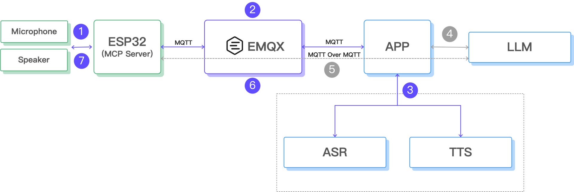 由于在上一篇文章中已经实现了通过 MCP 协议控制终端设备的能力(上述架构图中的步骤 4 和 5 ),我们本篇文章的主要精力放在语音处理上。