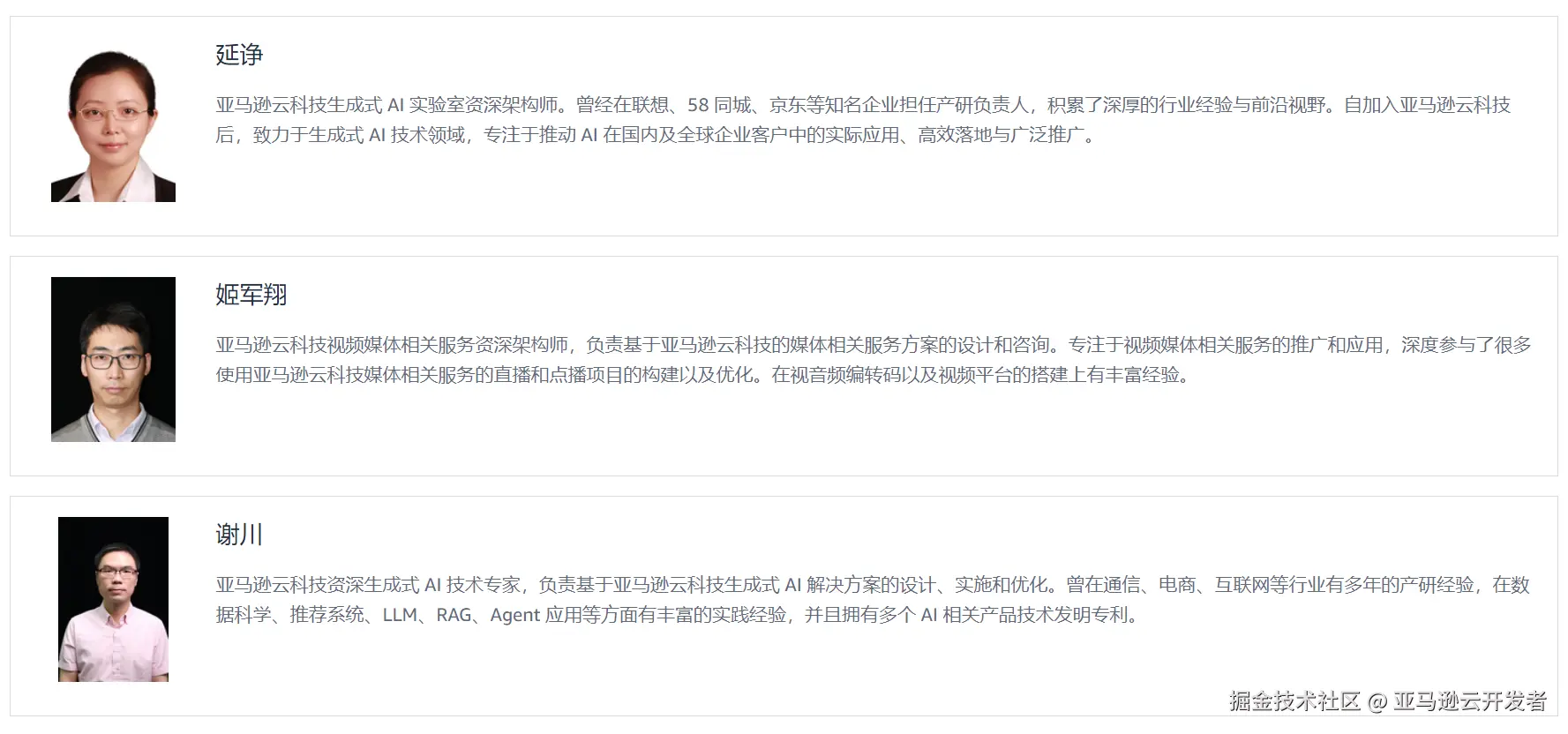 *前述特定亚马逊云科技生成式人工智能相关的服务目前在亚马逊云科技海外区域可用。亚马逊云科技中国区域相关云服务由西云数据和光环新网运营,具体信息以中国区域官网为准。
