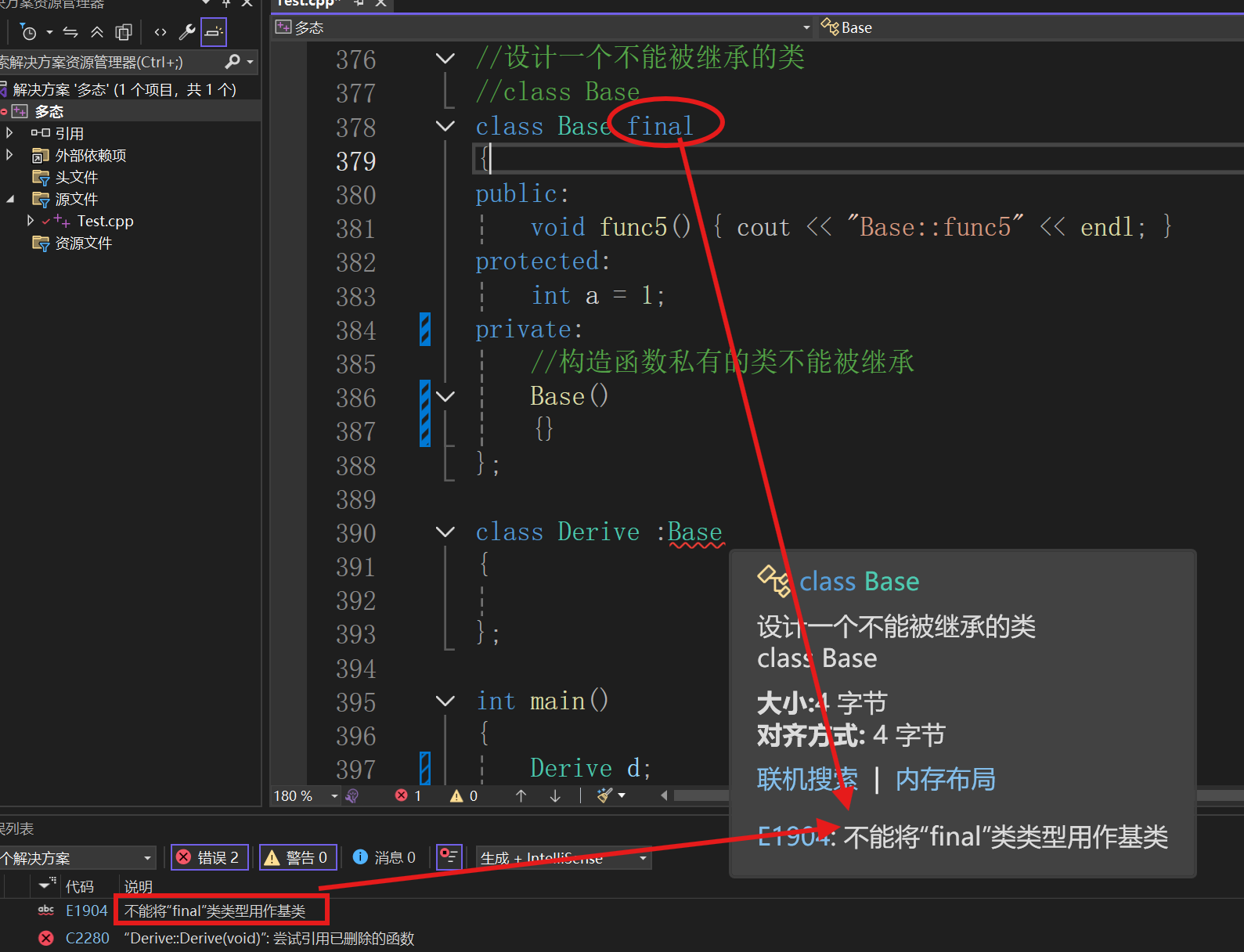 C++11新增了一个final关键字,final修改基类,派生类就不能继承了