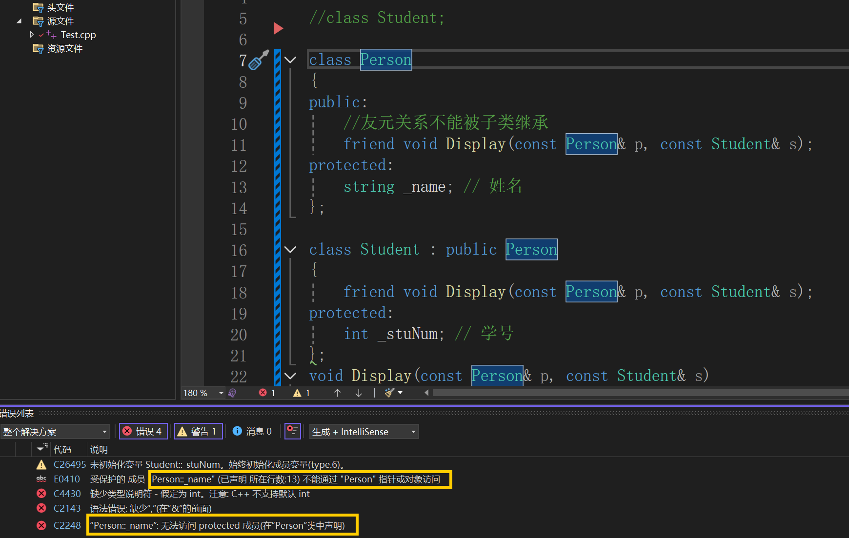 // 编译报错:error C2248: "Student::_stuNum": ⽆法访问 protected 成员