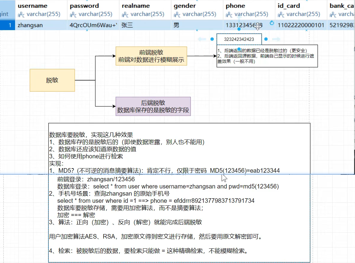 基于成本的衡量,目前数据库层脱敏的不多,更多是前端脱敏,所以下面演示一种前端脱敏方案