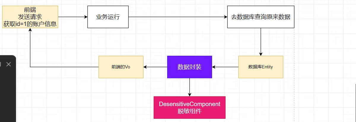 实现:后端把原始数据entity拿到后,放入vo类里面,而在 vo 类里给JavaBean字段标注注解 @Desensitive,后端返回前端之前,自动把这部分数据进行脱敏计算