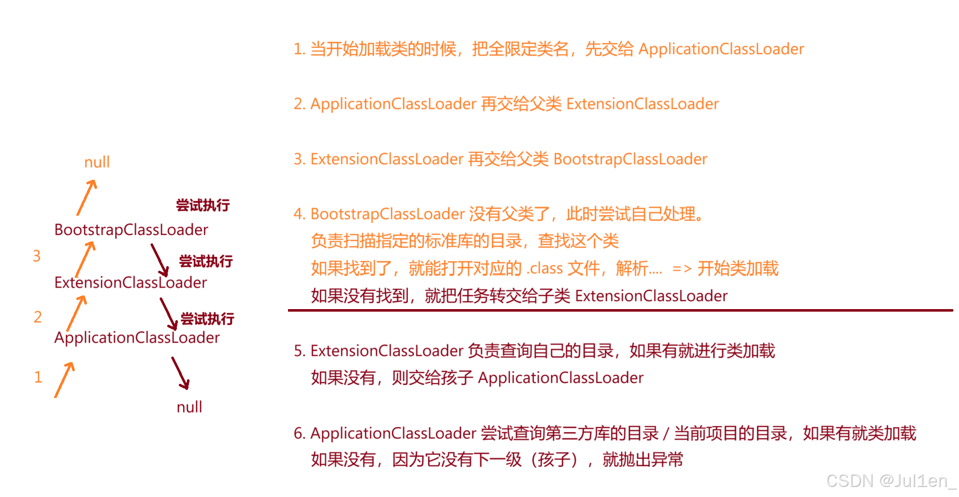 类加载机制中分为两部分,分别是类加载的流程 与 双亲委派模型(严格意义上其实是单亲,只有一个父亲)