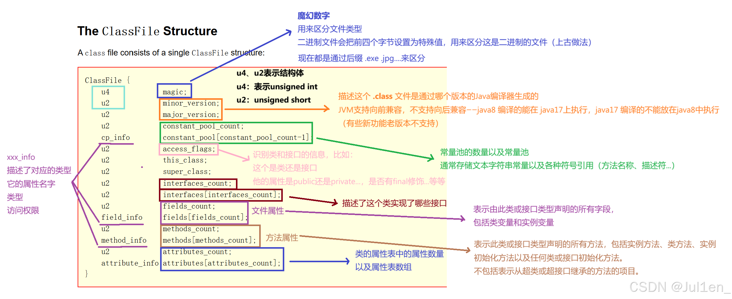 .class文件,并读取到内存中,在这过程中,还需要通过特定的结构来表示,即 "类对象",将类的信息存入元空间如:Class、方法、常量池、元数据在运行过程中: