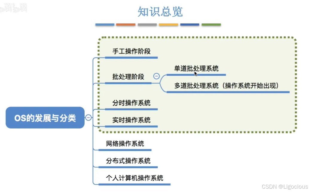 在正式开始这部分内容前,通过一张思维导图来直观的感受,操作系统的发展,以及操作系统的分类。