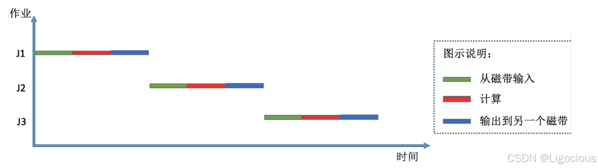 虽然一定程度上缓解了人和机之间的矛盾,也提高了资源利用率,当其缺点也是比较明显的:内存仅能容一道程序运行,只有这一道程序运行完以后,才能允许下一道程序运行。CPU也是有大量的时间是空闲等待i/o完成的。