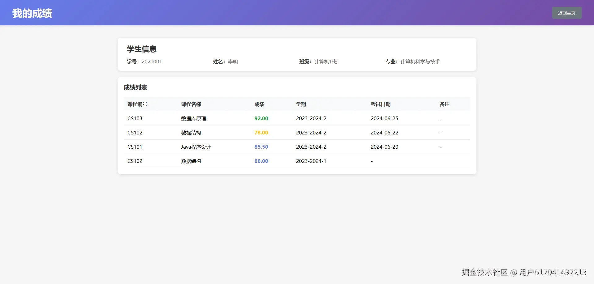 - ✅ 学生查看个人成绩