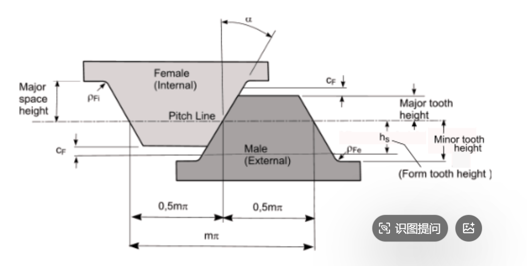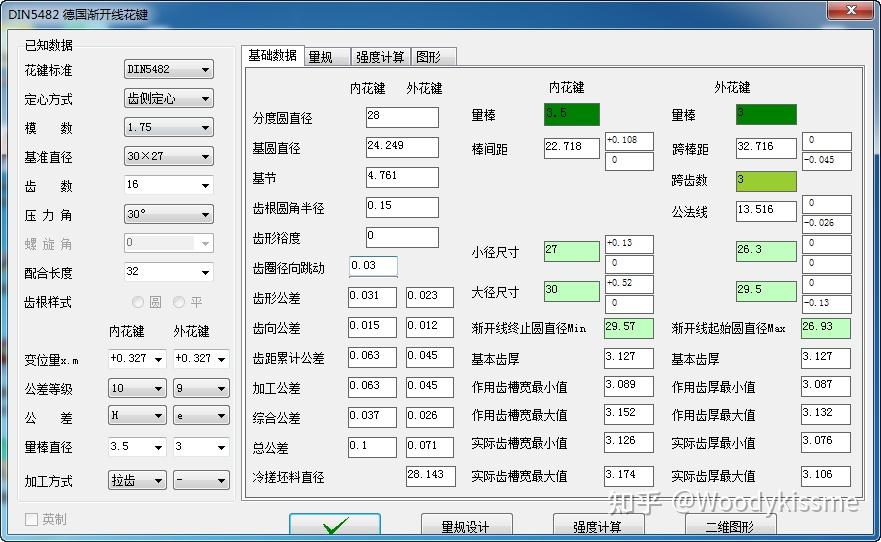 渐开线花键的基本参数包括规格、模数、齿数、压力角和变位系数(公称值)。选择合适的参数可以节省时间,防止遗漏探讨,并避免表面压溃(静连接)及过度磨损(动连接)等强度问题。