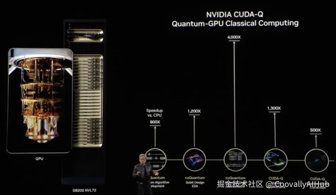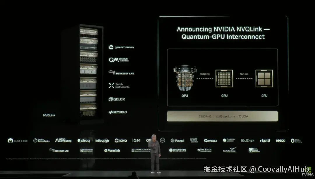 为了连接量子计算和GPU计算,英伟达宣布推出NVQLink------一种量子GPU互连技术,可实现从QPU进行实时CUDA-Q调用,延迟低至约4微秒。