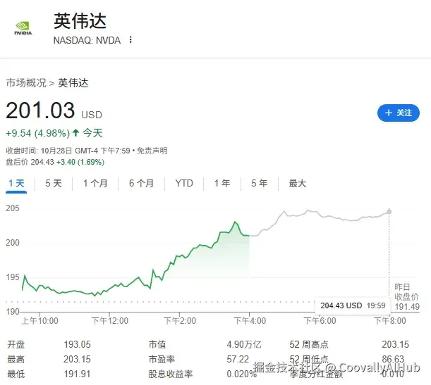 在黄仁勋GTC主题演讲结束后,英伟达股价应声上涨4.98% ,市值单日增加2300多亿美元,达到惊人的4.89万亿美元,盘中甚至触及4.94万亿美元的历史高点。