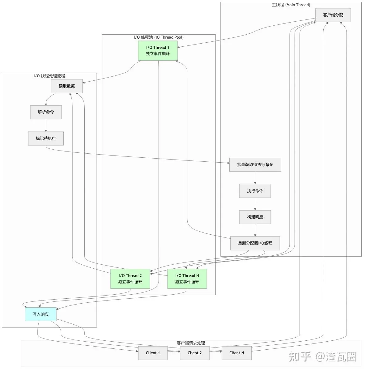- 真正的多线程 I/O:每个客户端从连接建立开始就绑定到特定 I/O 线程,实现真正的并行处理