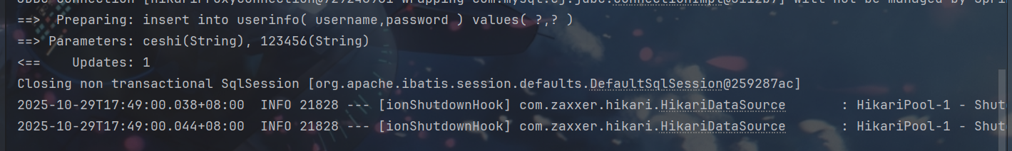 insert into userinfo(username,password,age) values(#{username},#{password},#{age})