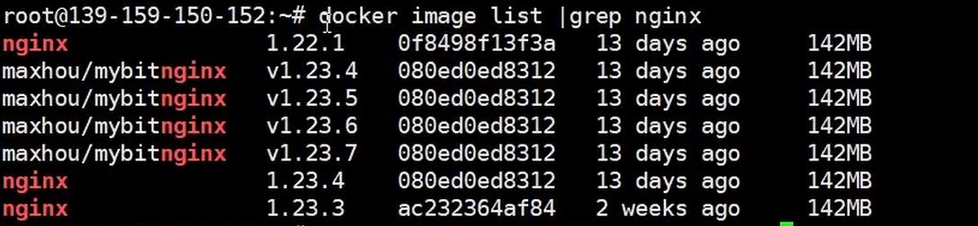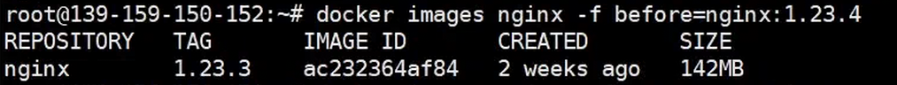 bash# 查看在nginx:1.23.4之前创建的所有nginx镜像 docker images nginx -f before=nginx:1.23.4