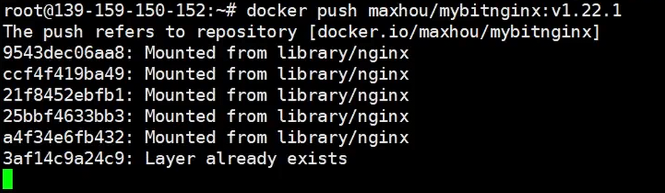 这两张图联合展示了推送过程的开始和结束,最终显示了镜像成功推送到远程仓库。