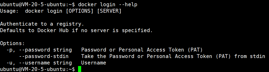 下图展示了docker login --help的输出,列出了所有可用的选项: