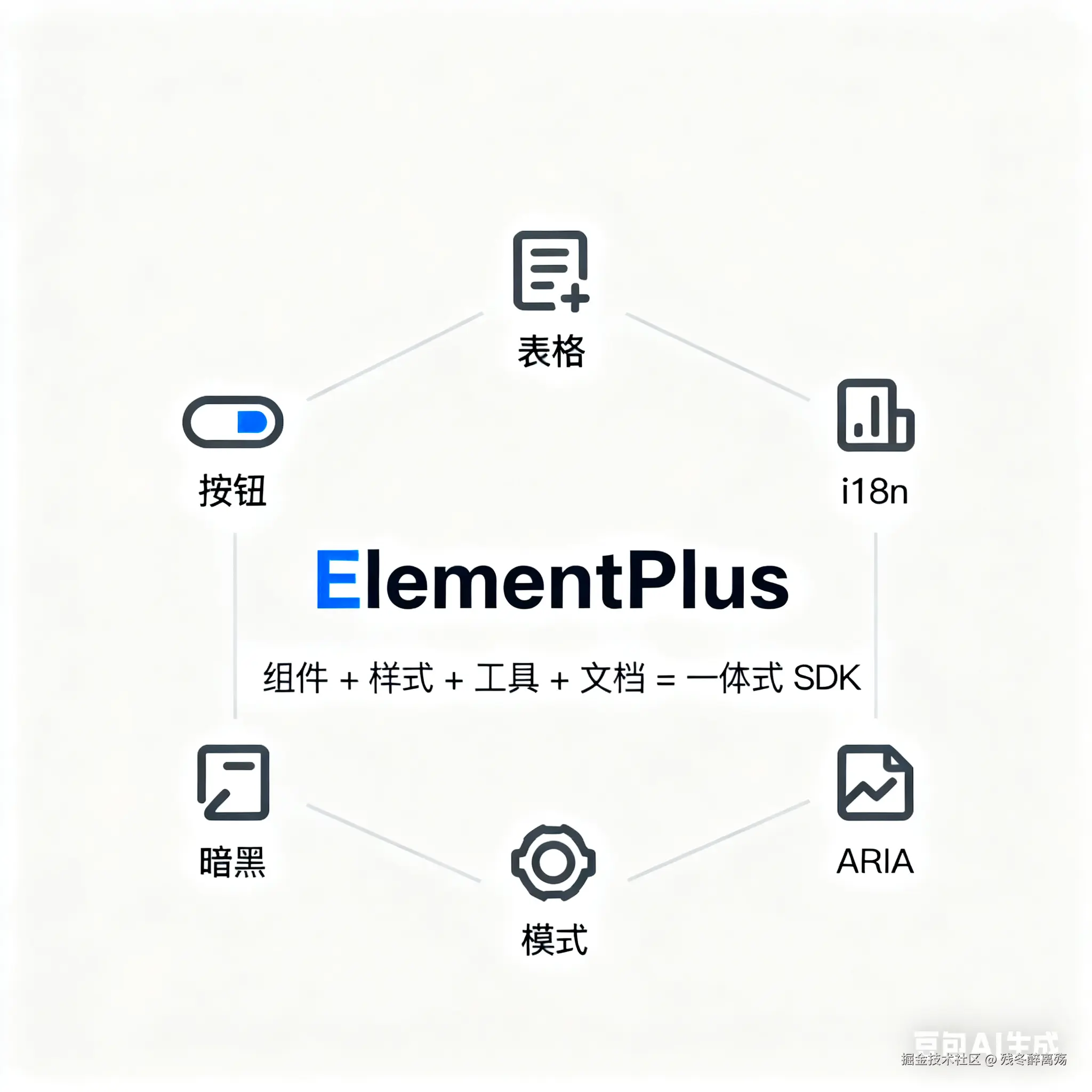| Element Plus | UI SDK | 提供组件、主题、国际化等完整UI体系 | 需要自己写按钮、表格、表单等组件 |