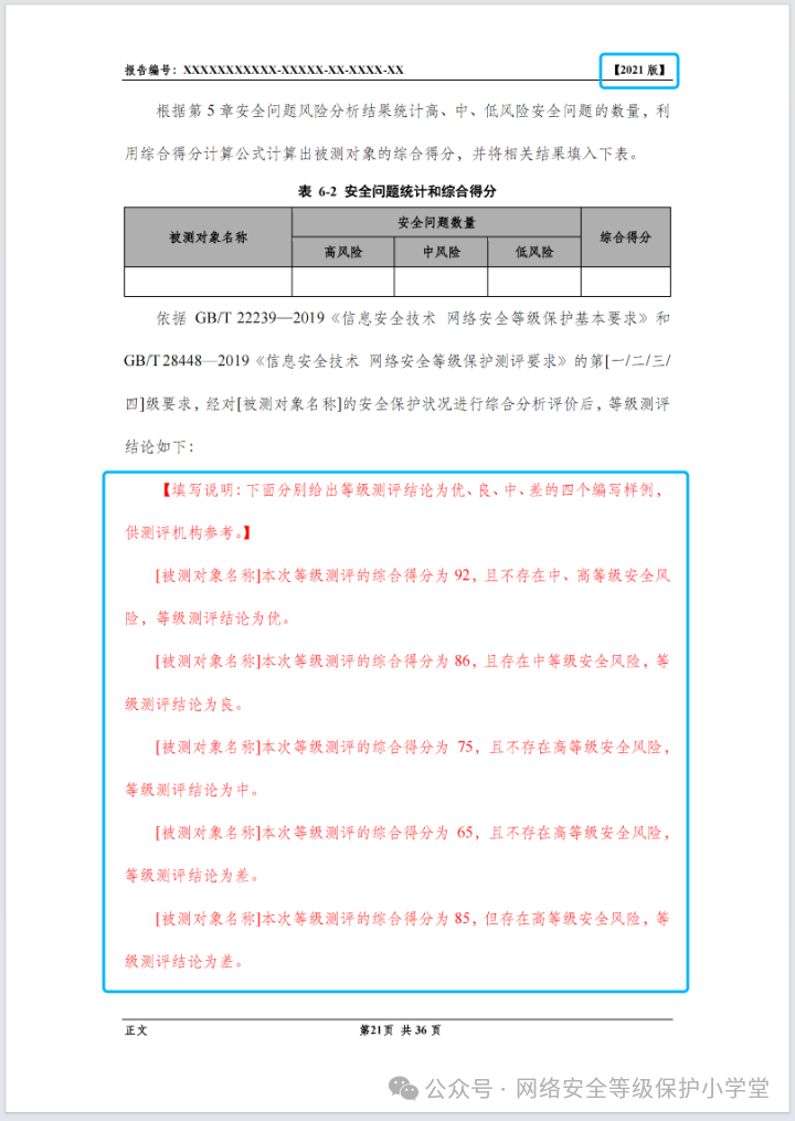 2025版报告相对于2021版报告,取消原有综合得分计算及优、良、中、差的评价体系,更改等级测评结论为符合、基本符合、不符合: