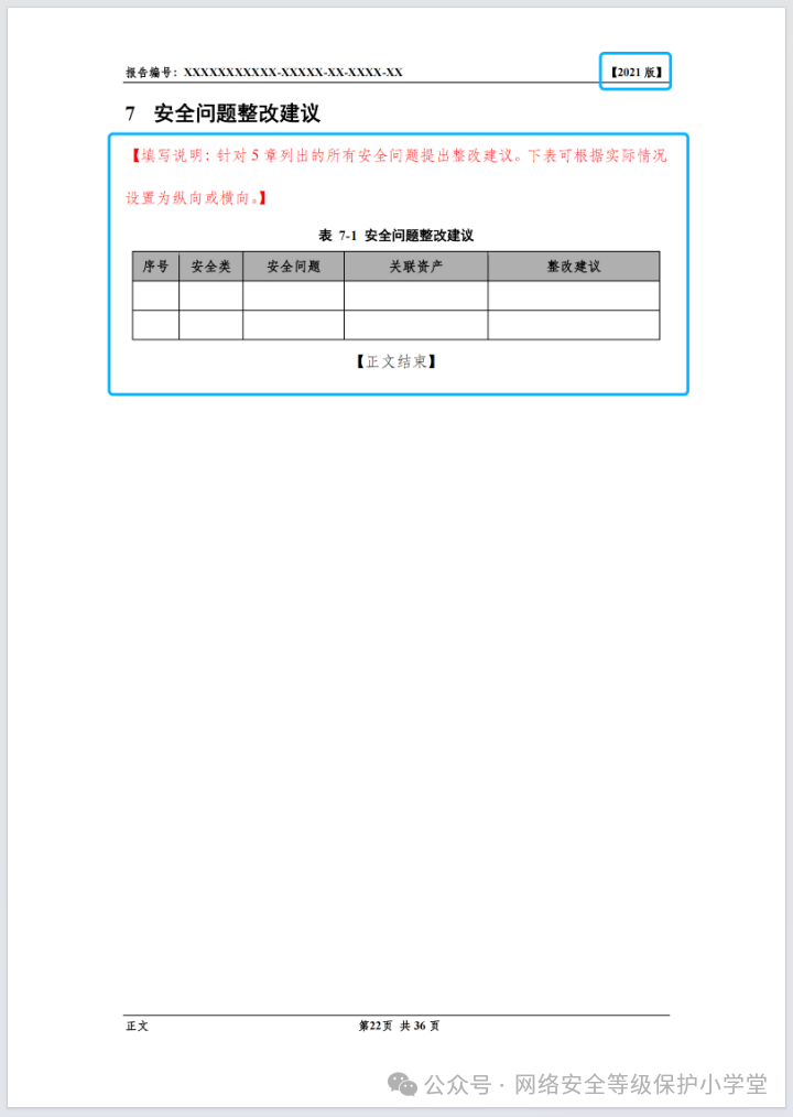 在2021版报告"安全问题整改建议"基础上,新增"重大风险隐患整改建议"章节。