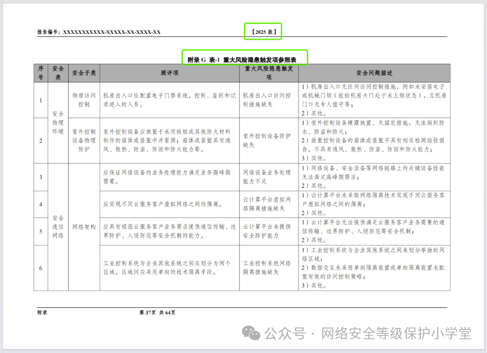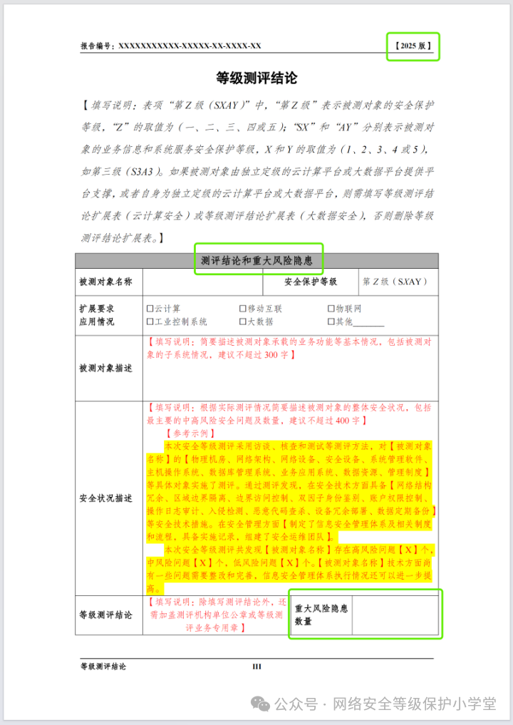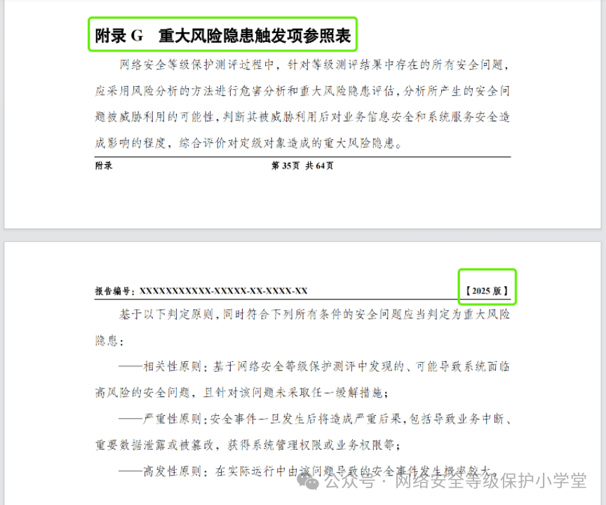 按照"国家网络安全等级保护工作协调小组办公室"2025年3月8日印发的《关于进一步做好网络安全等级保护有关工作的函》相关要求,自2025年3月20日起签署的等保测评项目合同,在项目实施中开始启用**《网络安全等级测评报告模版(2025版)》**出具测评报告,等保测评领域迈入全新阶段。
