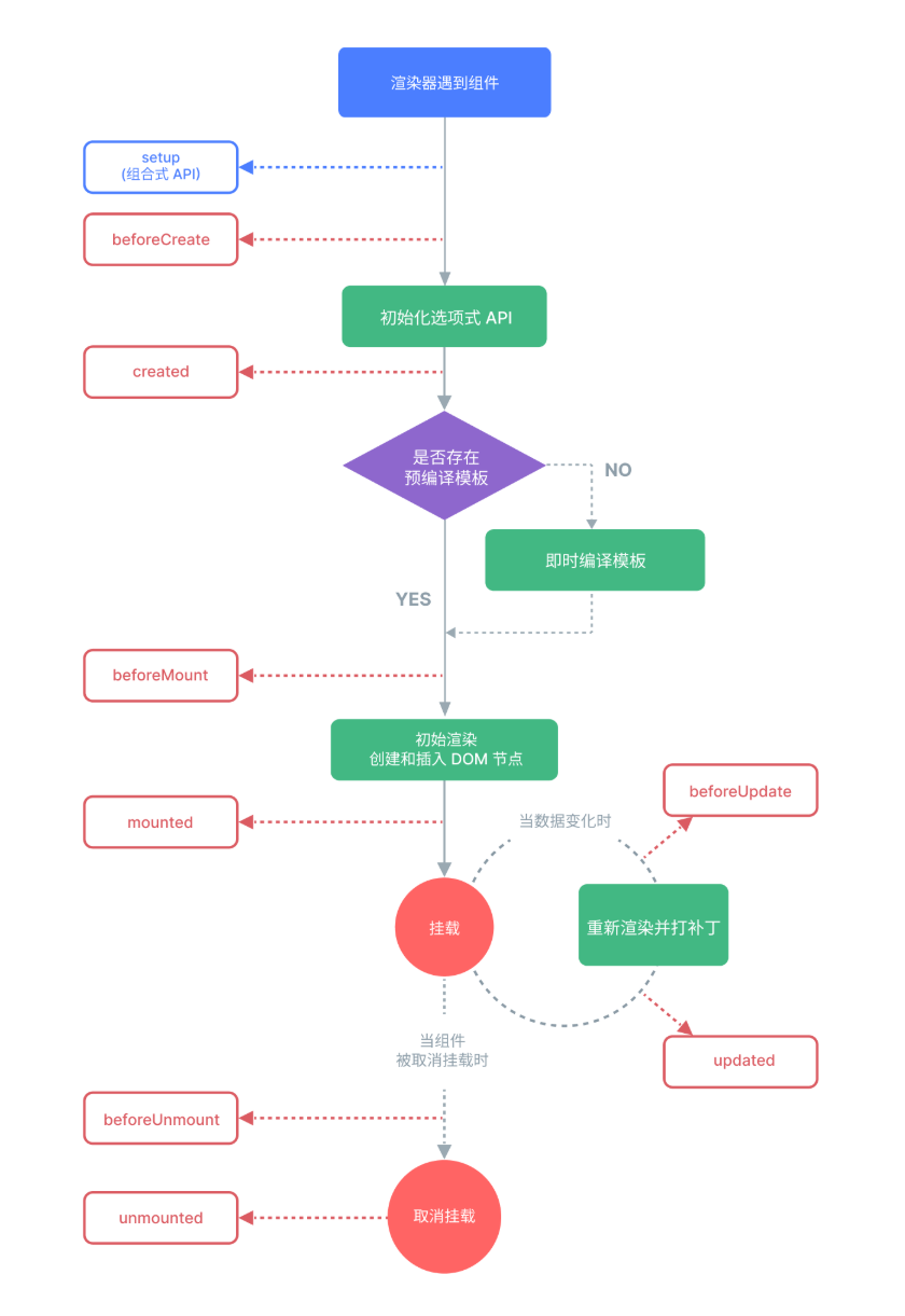 Vue3 的生命周期,如图: