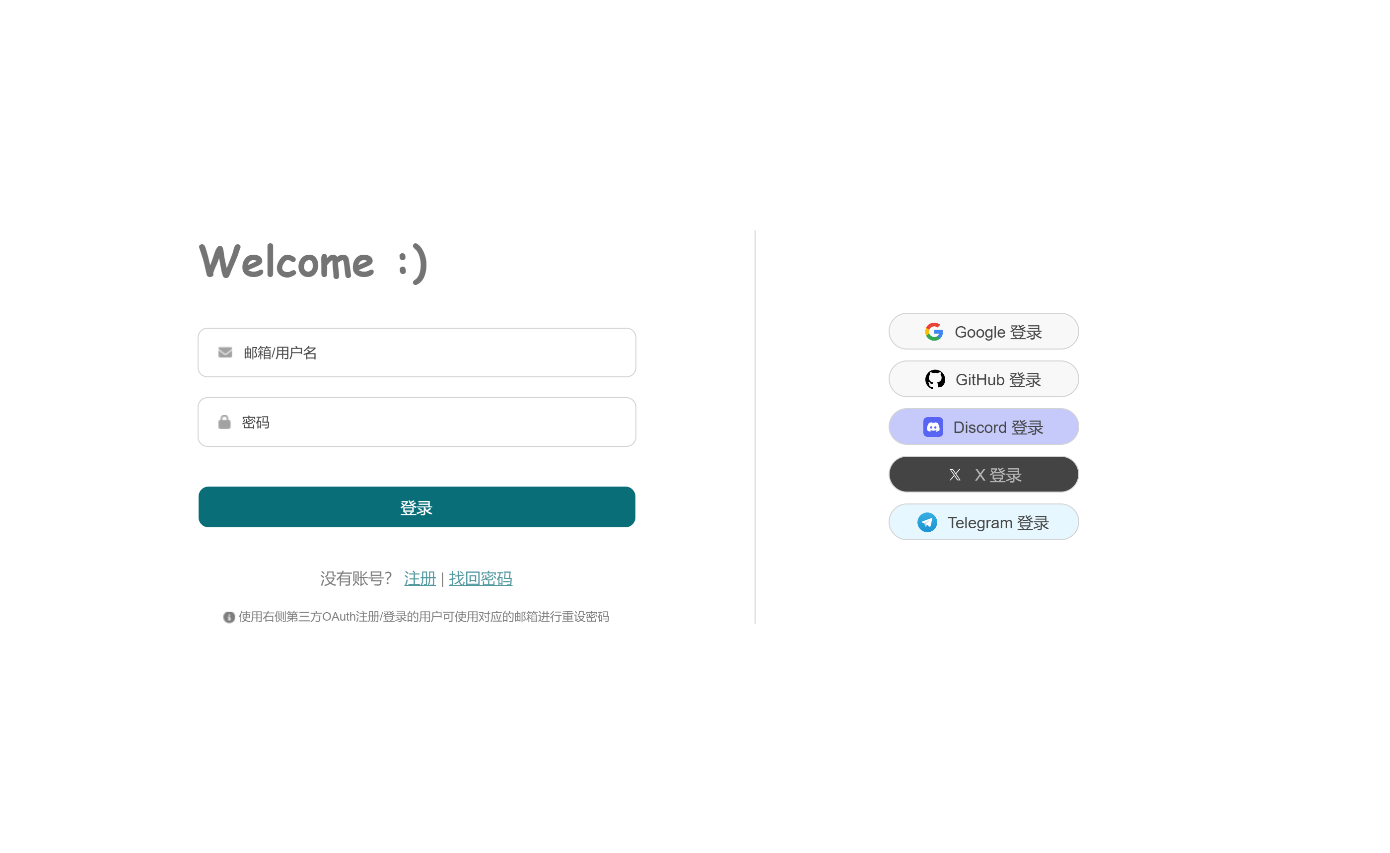- 灵活的登录体系:支持 JWT 认证及 Google、GitHub、Discord 等多平台 OAuth 登录,可通过环境变量可调整密码强度、登录方式、保护码等多种配置,兼顾安全性与便捷性