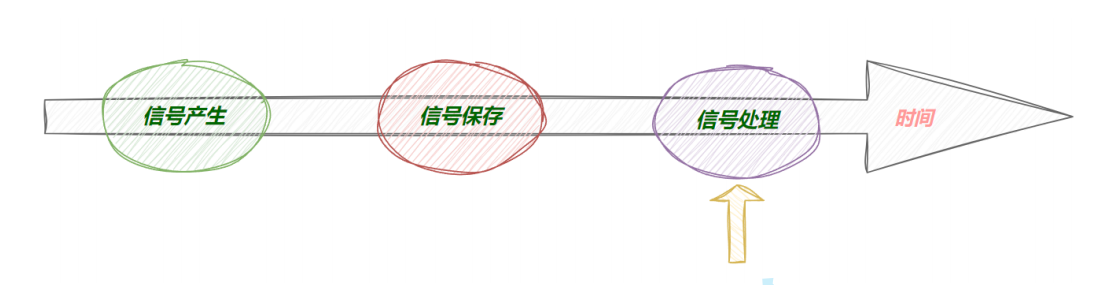 cpu在执行主函数逻辑时,会遇到硬件中断、异常中断、软中断这些,这时cpu会切换为内核态,处理完中断后,在从内核栈中恢复cpu寄存器组前会检查pcb中struct thread_info中的标志位,如果有信号处于未决,那就会将struct sigpending中的sigset_t signal未决信号集和pcb中的sigset_t blocked组合得到未阻塞,也就是需要递达的信号集,然后在struct sighand_struct查看信号的处理方法,cpu切换用户态,然后在用户栈中执行信号处理方法,执行完后cpu返回内核态继续处理下一个信号,直到所有信号被处理完,cpu从内核栈中恢复寄存器组,然后切换成用户态继续执行主函数逻辑