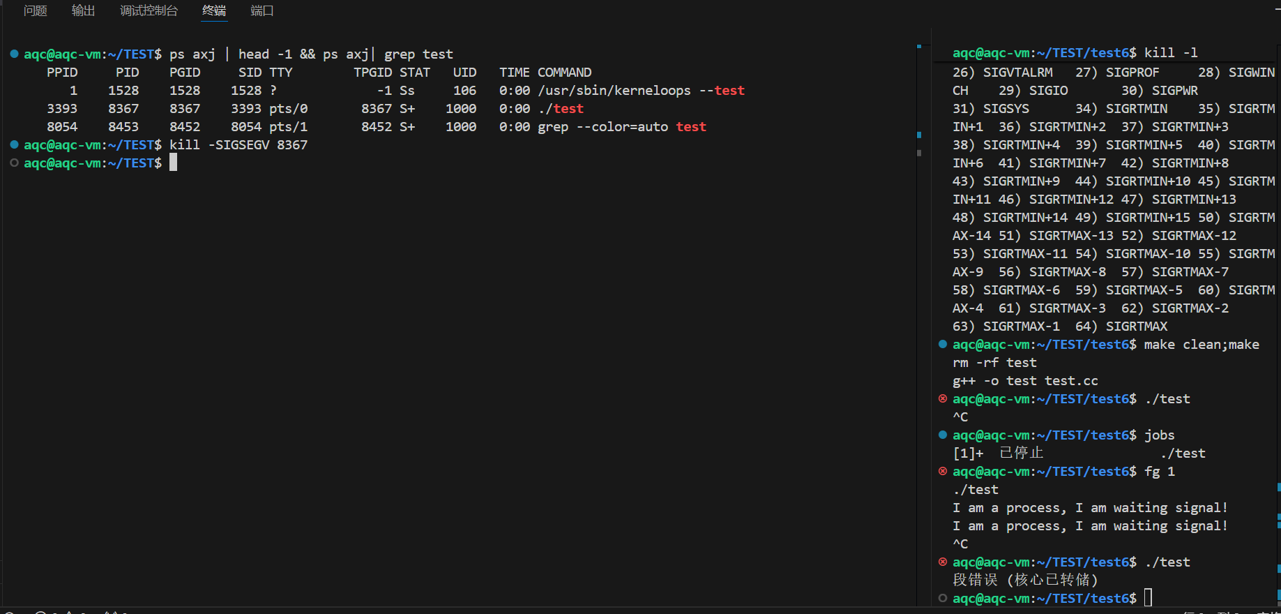 SIGSEGV是cpu执行代码出现段错误时给进程设置的信号,同样也可以使用kill命令给特定进程设置信号