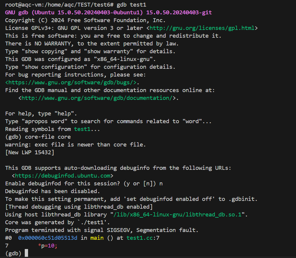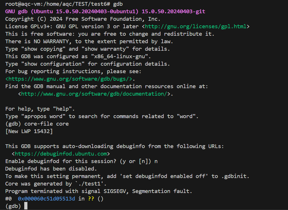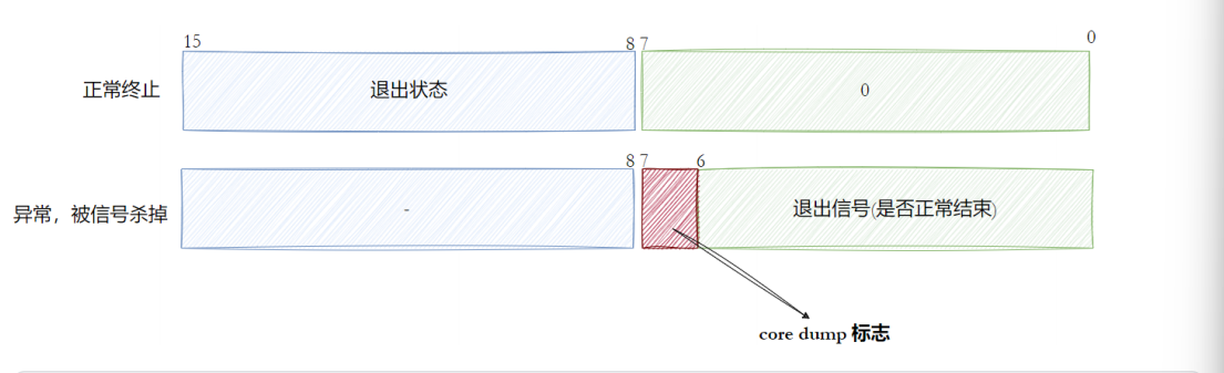 • Ctrl+\(SIGQUIT)给前台进程组的进程设置SIGQUIT信号,默认行为⽣成core dump核心转储⽂件,在pcb中设置cwore dump标志,异常终止进程