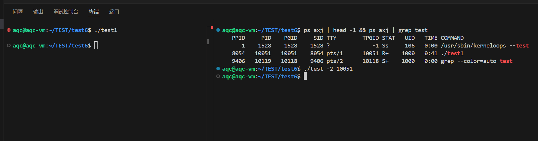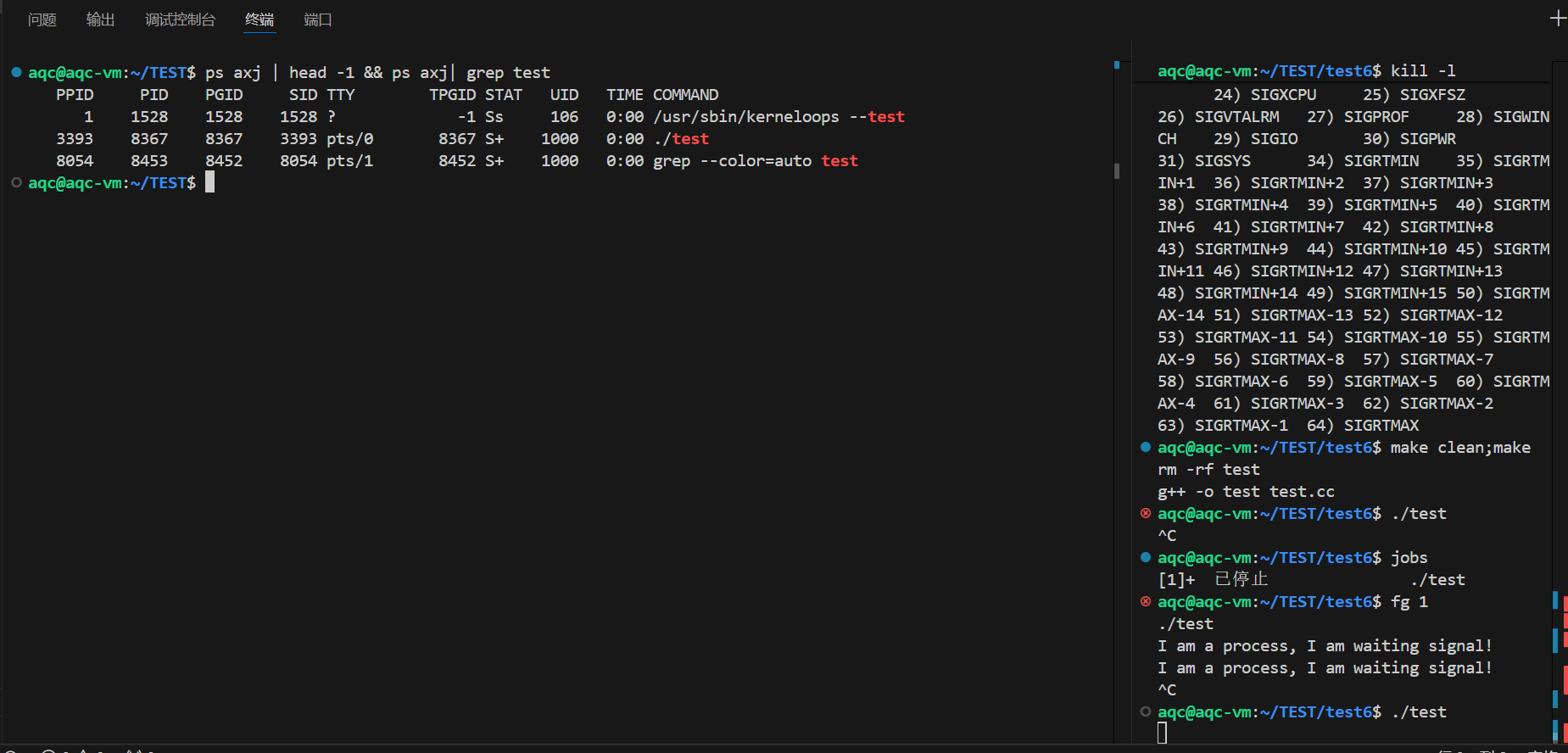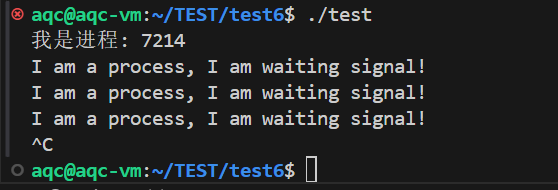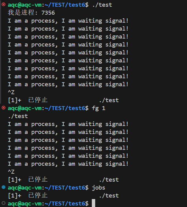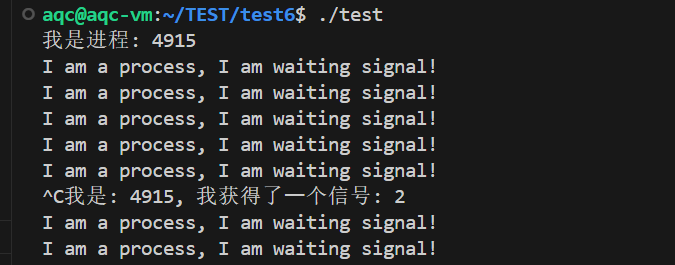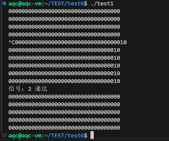 修改了SIGINT信号的处理函数,于是前台进程./test就不再异常终止了,而是打印信息