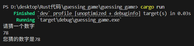 {}占位符打印guess变量的内容。Rust 会自动将其转换为字符串显示。