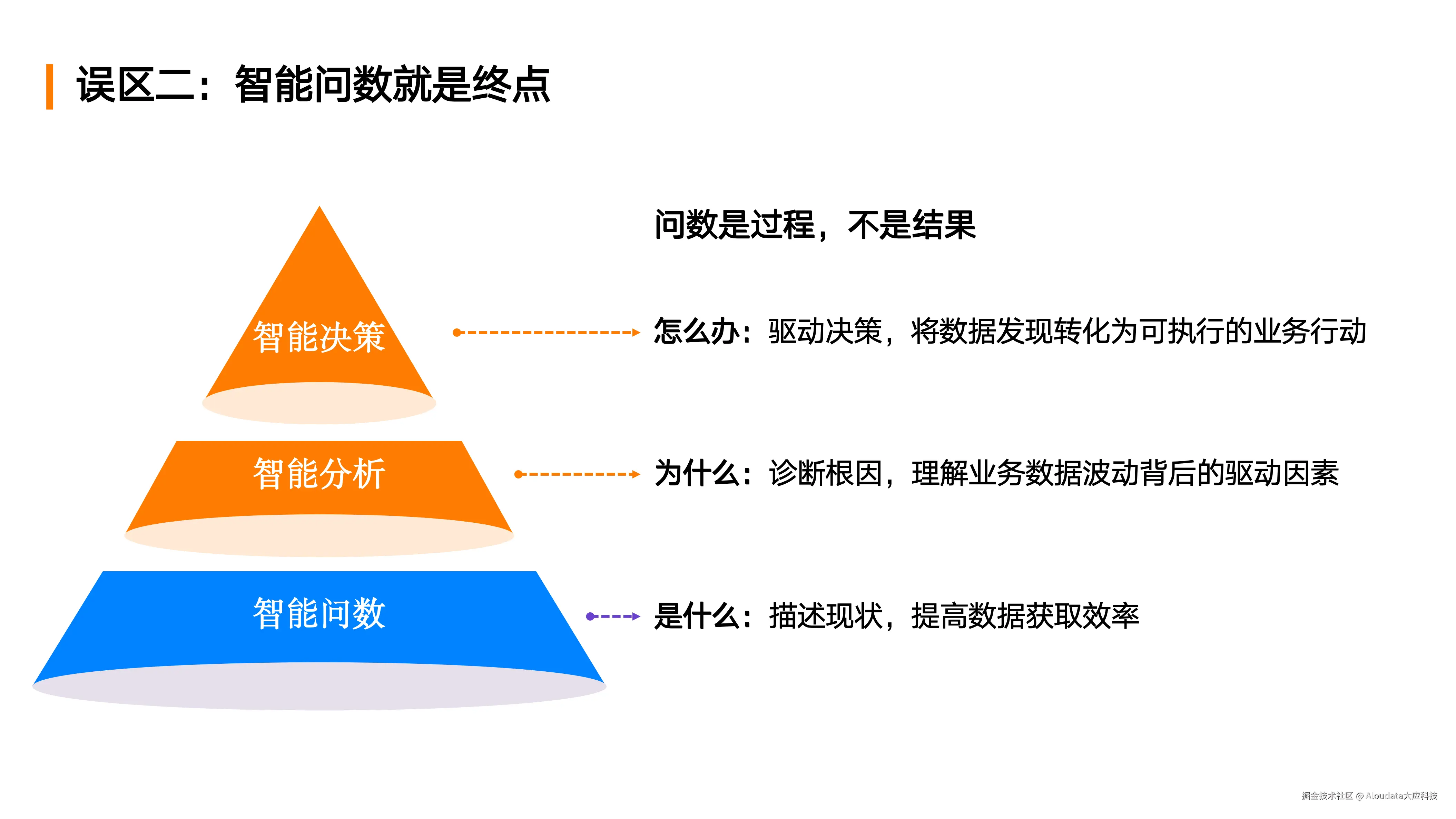 市场上众多产品将智能问数视为终极目标,但真实业务场景中的数据需求远不止于此。完整的分析价值链应当包含:从数据获取开始,延伸到趋势观察、波动归因、影响因素分析,最终落地到行动决策。智能问数仅仅是这个链条的起点。如果产品只解决"问数"环节,只回答"是什么",而不能进一步回答"为什么"和"怎么办",就如同只提供了开采工具却缺少精炼设备,无法将原始数据转化为真正的业务价值。