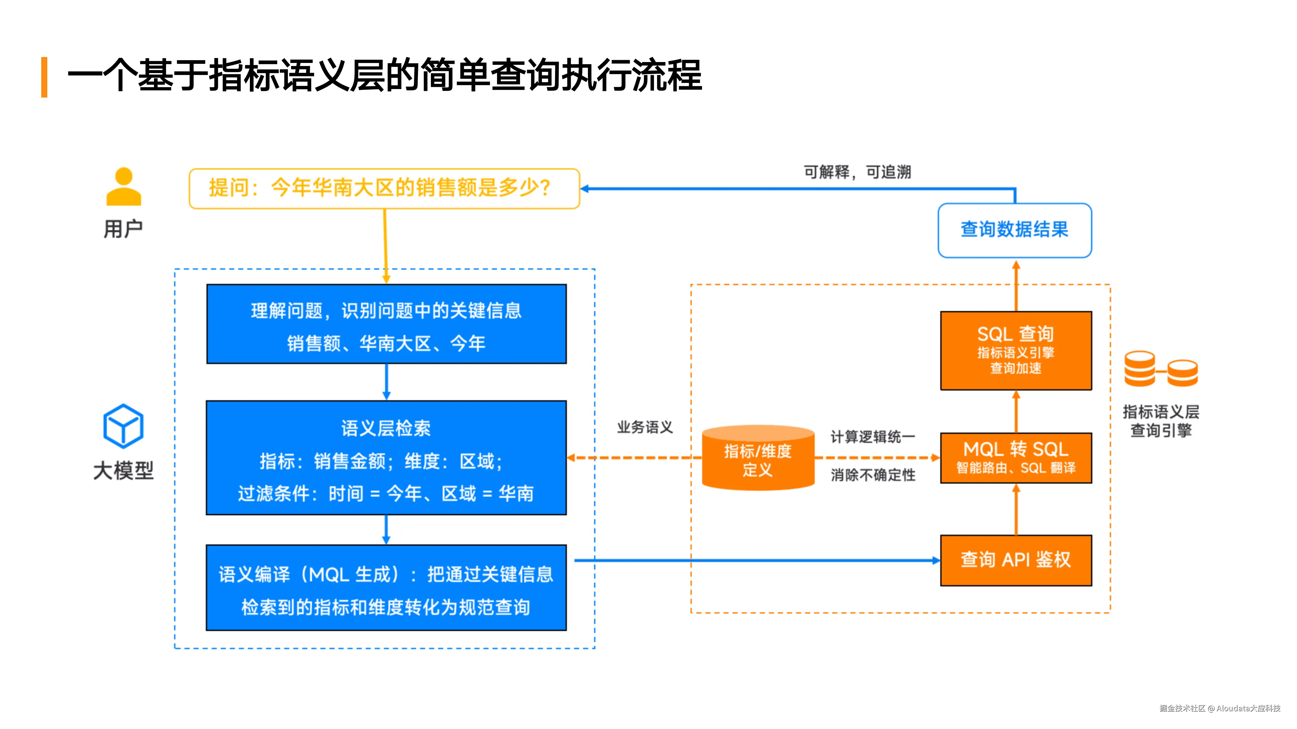 - 查询执行:通过语义引擎将 MQL 转换为准确 SQL,查询数据