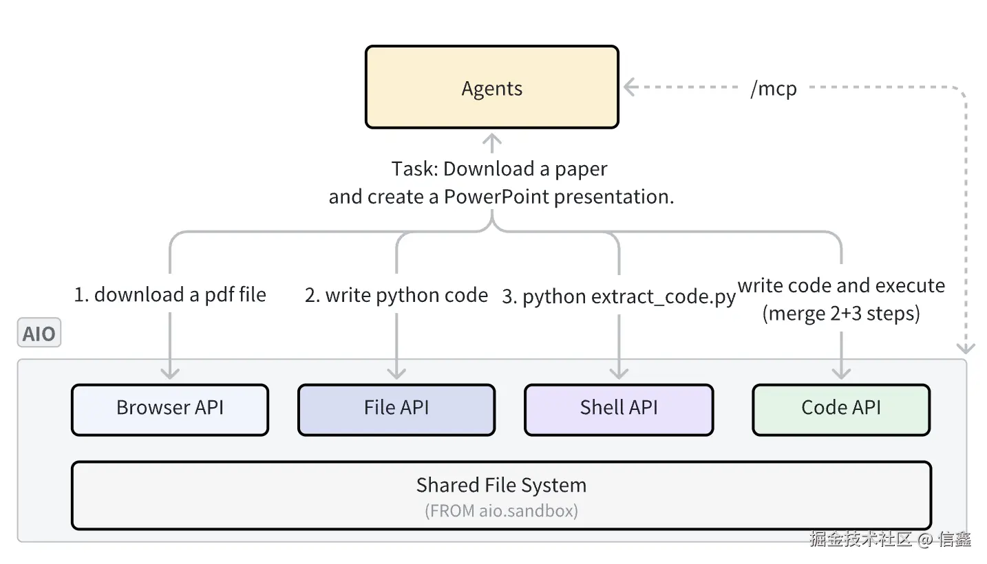 AI Agent 在执行复杂任务时,常需在浏览器、代码执行、文件系统之间切换。传统多沙箱方案面临环境割裂、数据搬运、鉴权复杂等问题。AIO Sandbox 通过一个 Docker 镜像 整合所有能力,提供统一文件系统与鉴权,并支持镜像定制,提升了 Agent 任务执行与交付效率。