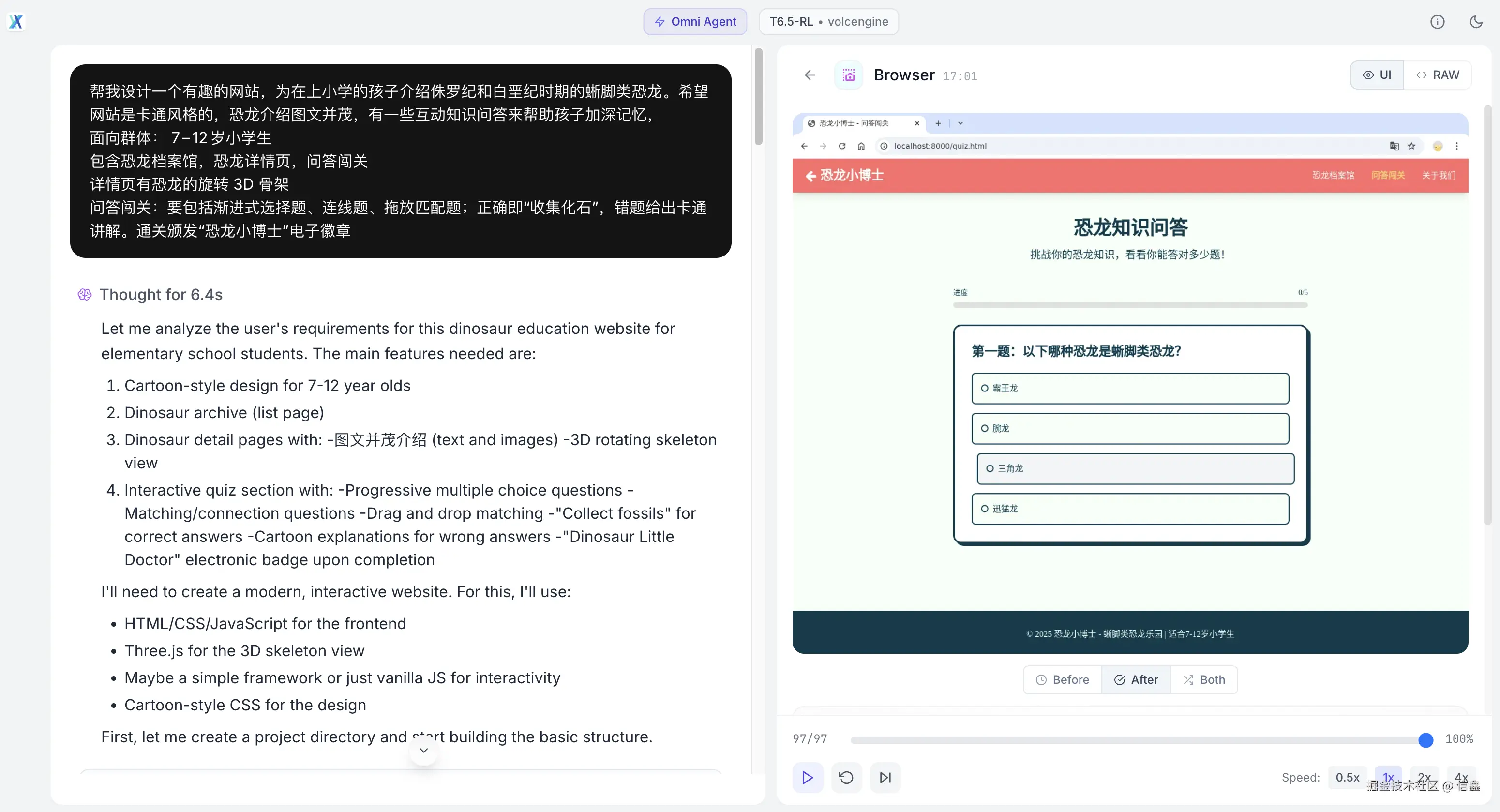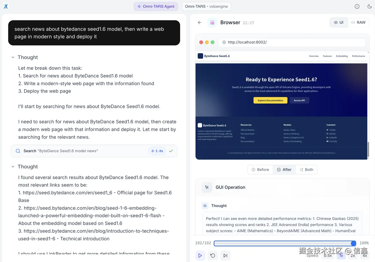 | 搜索关于字节跳动 Seed 1.6 模型的新闻,然后以现代风格编写一个网页并部署 | Replay | ![]() |