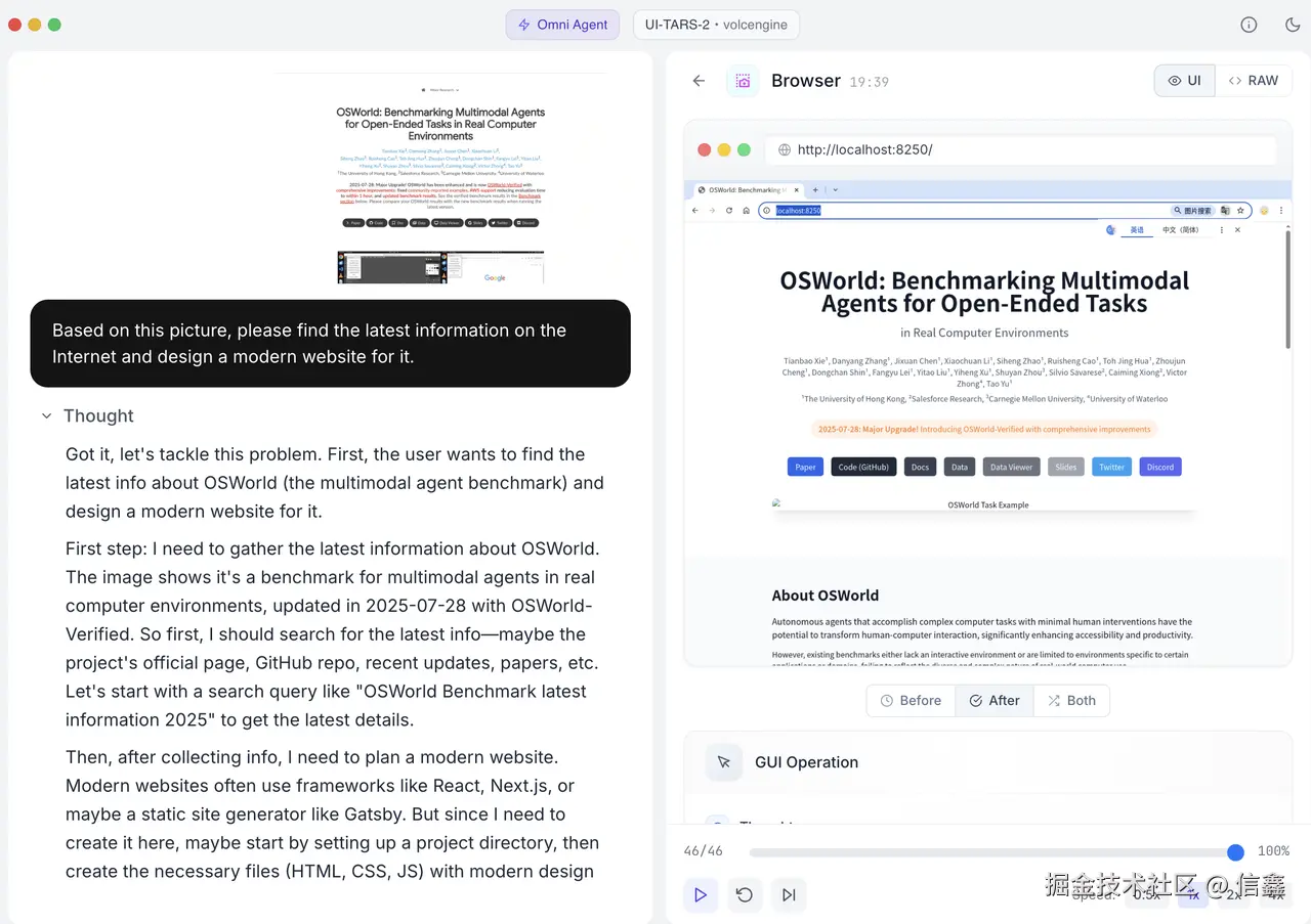 | 根据这张 OSWorld 图片,请在互联网上查找最新信息并为其设计一个现代化的网站。 | Replay | ![]() |