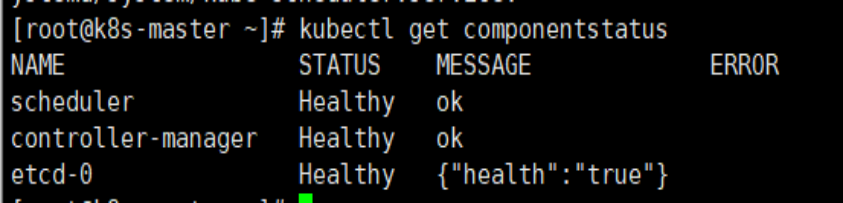 [root@k8s-master ~]# systemctl start kube-apiserver.service kube-controller-manager.service kube-scheduler.service