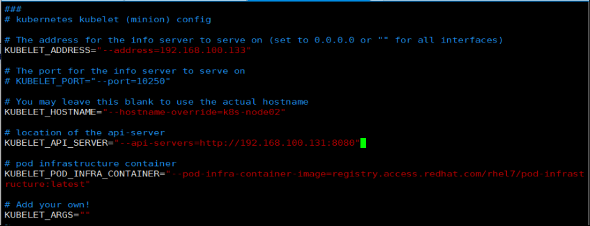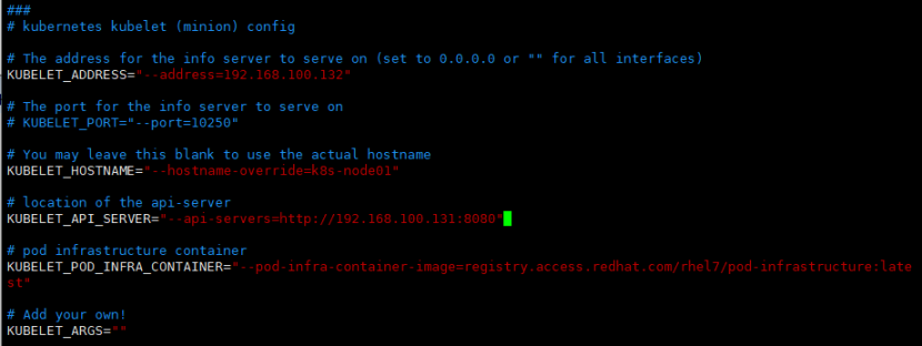 5 KUBELET_ADDRESS="--address=192.168.100.131" //监听IP地址