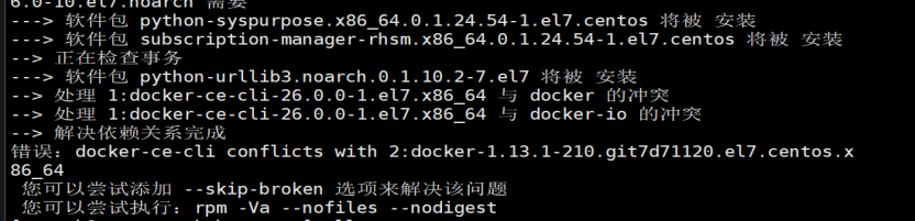问题 : 造成该错误的主要原因是由于安装k8s过程中会自动依赖安装docker,但是由于本地已经安装了其他版本的docker,造成依赖关系检查不通过