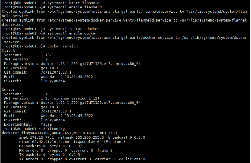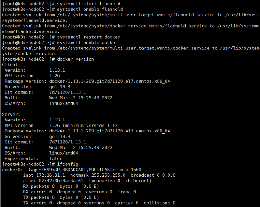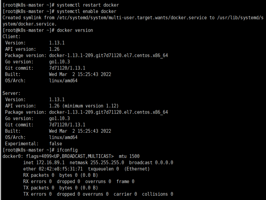[root@k8s-master ~]# systemctl restart docker //重新启动docker服务和flannel网络保持一致