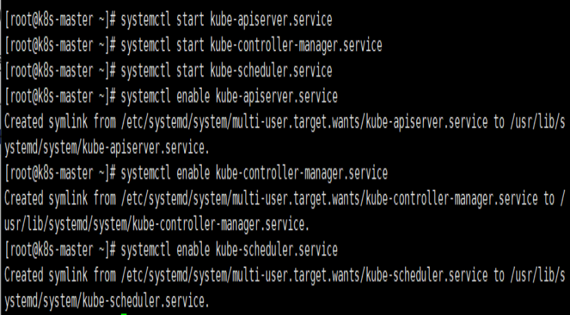 [root@k8s-master ~]# systemctl enable kube-apiserver.service kube-controller-manager.service kube-scheduler.service