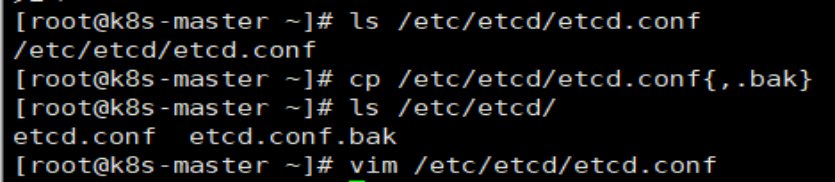 [root@k8s-master ~]# cp /etc/etcd/etcd.conf /etc/etcd/etcd.conf.bak