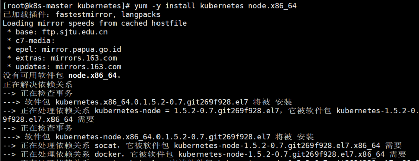 [root@k8s-master ~]# yum -y install kubernetes node.x86_64