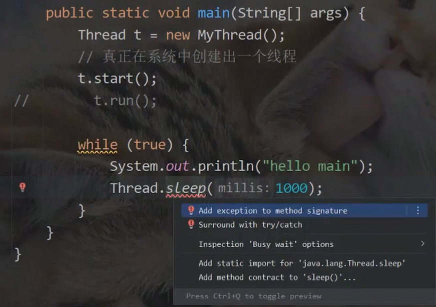 是 Java 中用于让当前线程暂停执行指定时间的方法,属于线程控制的核心 API 之一。它的作用是让线程进入 "休眠" 状态,暂时让出 CPU 使用权,直到指定时间结束后再重新进入就绪状态,等待调度。