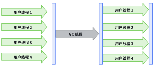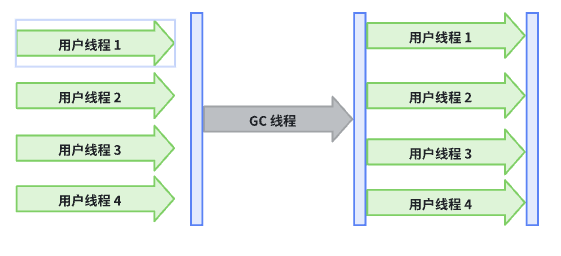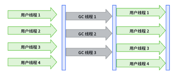 注:长时间卡顿的意思是,此 GC 启动之后,属于一次性完成所有操作,于是单次 暂停 的时间会较长。