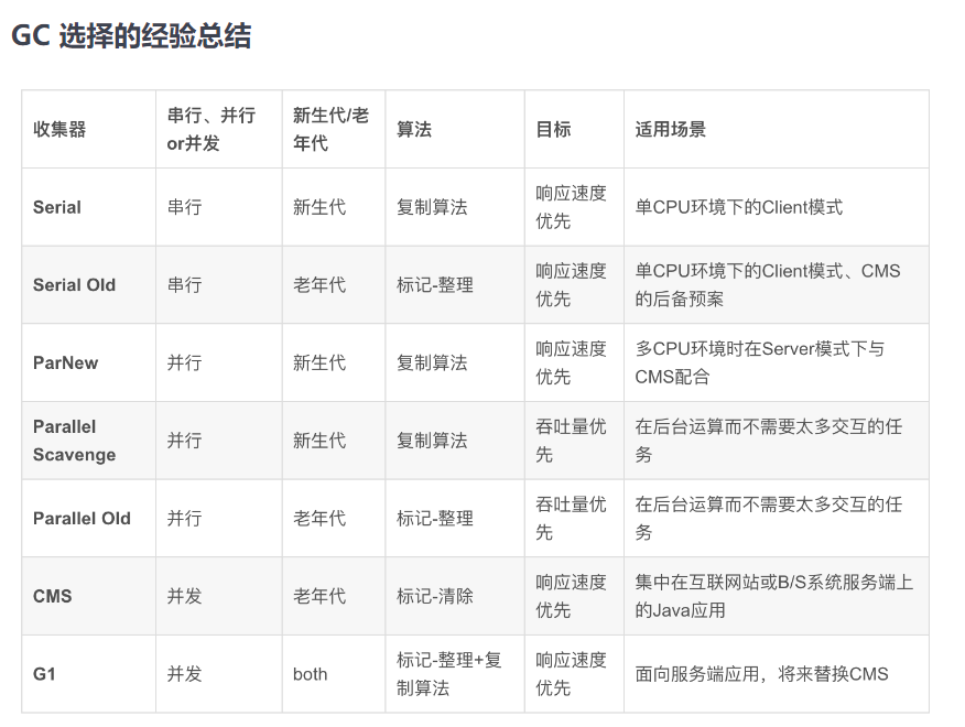 对于服务器端来说,因为一般是多个 CPU 内核,并不推荐使用,除非确实需要限制 JVM 所使用的资源。大多数服务器端应用部署在多核平台上,选择 串行 GC 就意味着人为地限制了系统资源的使用,会导致资源闲置,多余的 CPU 资源也不能用增加业务处理的吞吐量。