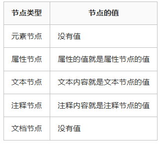 - nodevalue属性可以显示节点的值,元素节点没有值,显示null