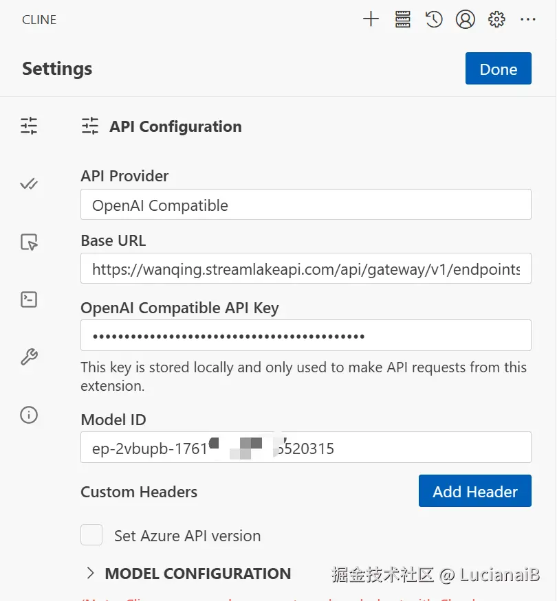 在cline配置好的效果。