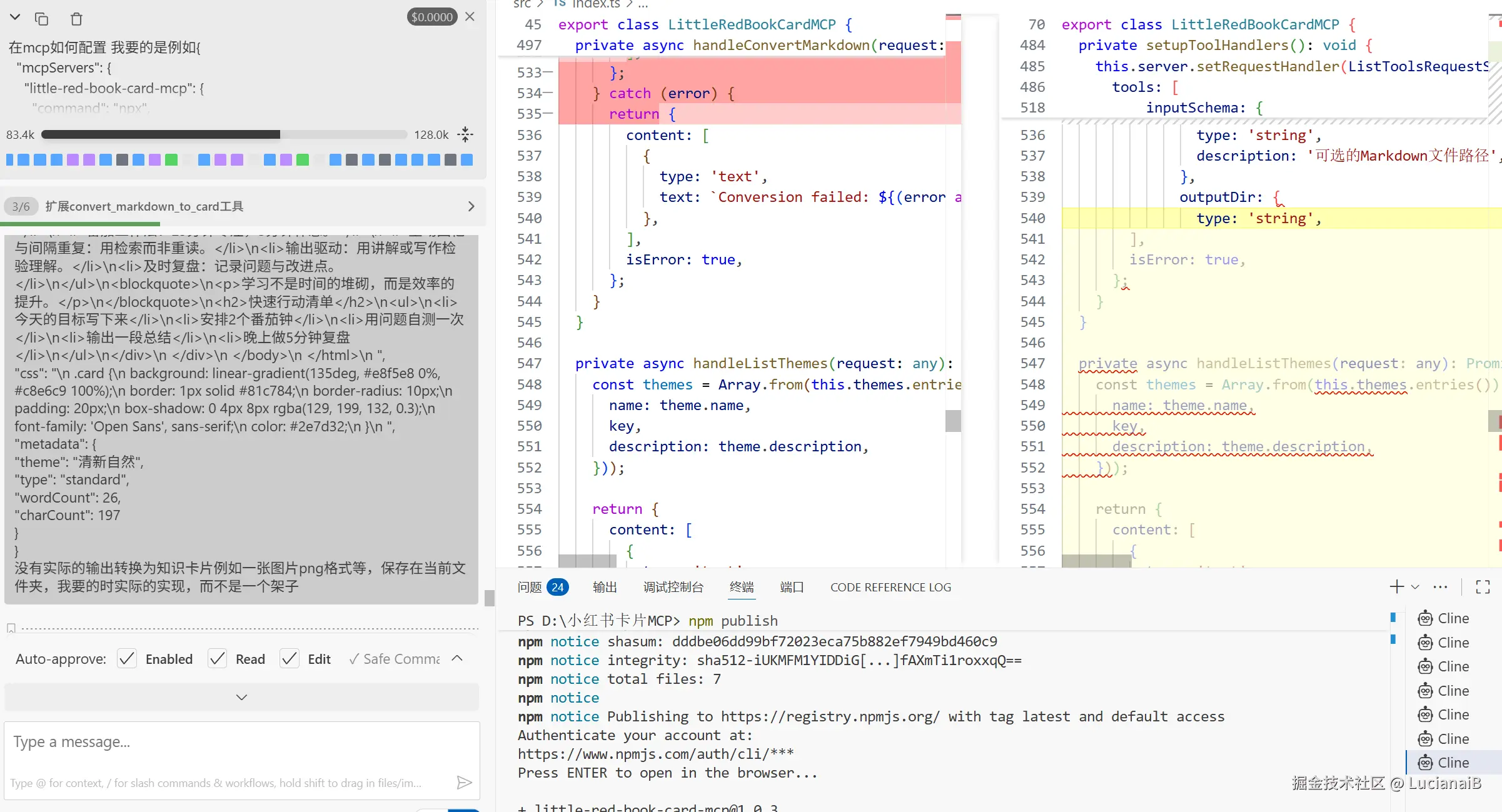 每个程序员都熟悉计算机,是最适合写技术博客以及做分享的人。最近发现了一个Markdown转知识卡片,值得注意的是,可以利用这个快速制作小红薯📕卡片,但是有点小贵,对于我这样的白嫖党,那肯定是负担不起的,于是决定利用KAT-Coder-Pro V1复刻一个小红薯📕卡片MCP。