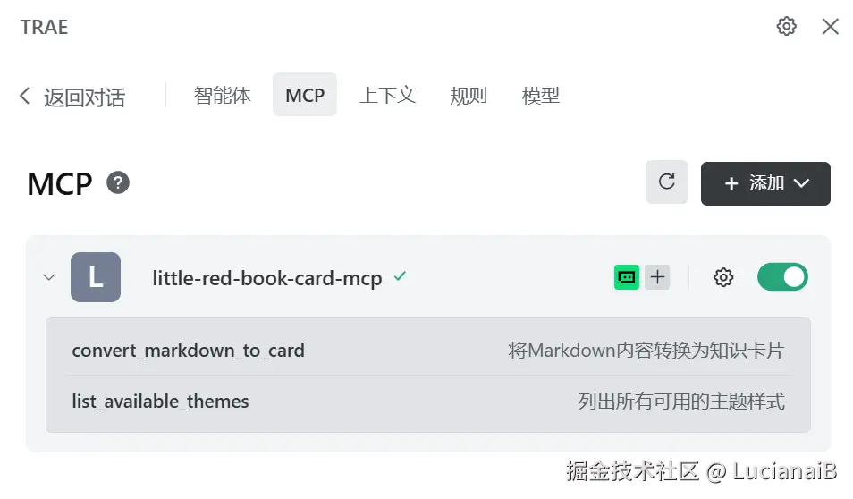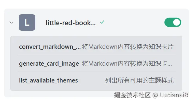 可以看到成功的制作并部署了一个小红书卡片mcp。其中有2个功能: