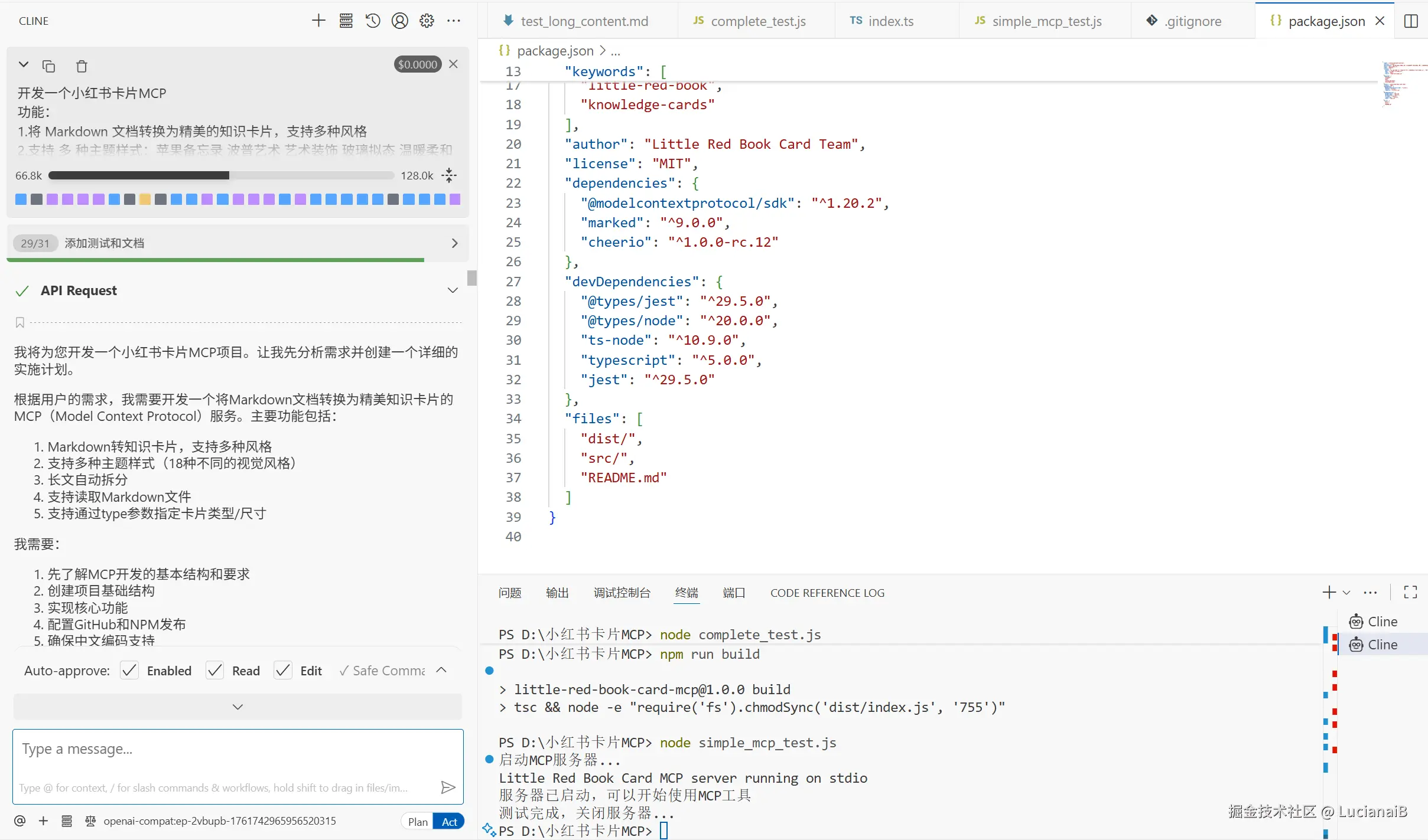 仅仅一次,就完成了从设计到成品,再到测试,可以看到在测试中遇到的问题它都会去处理,只有通过测试,它才会发布到npm。